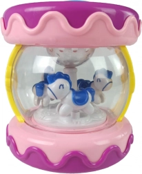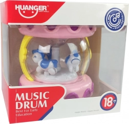 Kúzlom tohto bubna je vnútorný kolotoč s koníkmi, ktorý zaujme a drží pozornosť, zatiaľ čo deti rozvíjajú koordináciu s pomocou tejto kreatívne podporujúcej hračky. Hra s bubnom pomáha rozvíjať jemnú motoriku prstíkov a tým napomáha budúcemu osvojovaniu zručností ako písanie a logické myslenie.