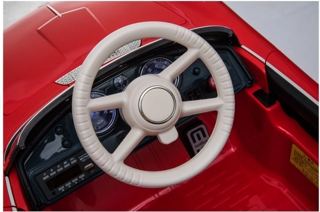 Krásny červený lak s retro designom a chrómovými akcentmi činí z tohto auta skutočnú ozdobu každého detského izby.
