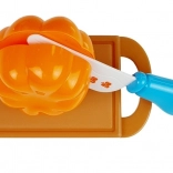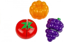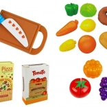 Sada obsahuje rôzne príslušenstvo ako nákupný vozík, potravinové atrapy v podobe rajčiny, mrkvy alebo tekvice, a ďalej atrapu skenera a pokladňu.