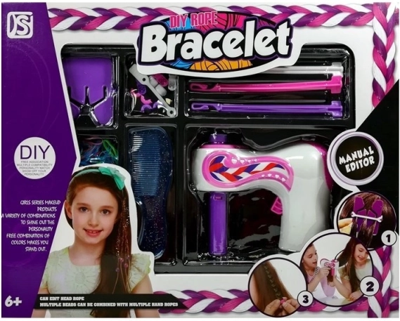 So súpravou na pletenie vrkočov môžu vaše deti vytvárať elegantné účesy jednoducho a rýchlo. Obsahuje špeciálny pletienec s tromi rotujúcimi držiakmi, ktoré držia pramene vlasov. Fialový rozdeľovač uľahčuje rozdelenie vlasov na tri rovnaké časti a zabezpečuje jednoduché vkladanie do pletenky.