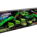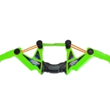 Živá zeleno‑čierna kombinácia s červenou tetivou pôsobí dynamicky a motivuje deti k aktívnej hre vonku.