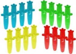 - Obsah balenia: pirát, sud s otvormi, 16 farebných mečíkov (4× žltý, červený, zelený, modrý), koleso šťastia s farbami
