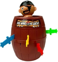 Táto veselá pirátska hra zabaví deti aj dospelých. Umiestnite piráta do suda, postupne zasúvajte kolíky/mečíky a sledujte, komu pirát vyskočí. Jednoduché princípy, rýchle kolá a množstvo zábavy robia z tejto hry ideálnu voľbu na rodinné hranie aj detské oslavy.