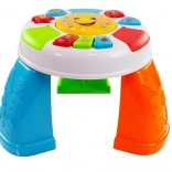 Na okraji je mini piano s tromi zvieratkami, ktoré povzbudzuje deti k objavovaniu zvukov. Nohy stolíka zdobia písmenká, čísla a ovocie, čo nenápadne rozširuje slovnú zásobu. Stolík možno ľahko zmontovať aj rozmontovať – odnímateľné nohy umožňujú hranie aj na koberci či v postieľke.