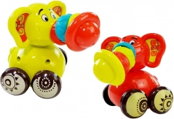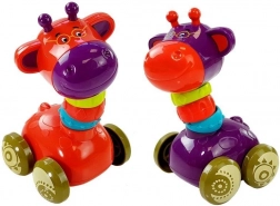 Tieto farebné hračky spájajú obľúbené zvieratká s malými vozíčkami, aby deti mohli rozvíjať svoje zručnosti pri zábavnej hre. Elastický chobot slona a krk žirafy sú uchytené na gumičke, dajú sa naťahovať a pri pohybe príjemne chrastia. Slon má na chobote tri gumové krúžky a plastový klobúčik, žirafa je zdobená krúžkami v červenej, tyrkysovej a zelenej farbe.