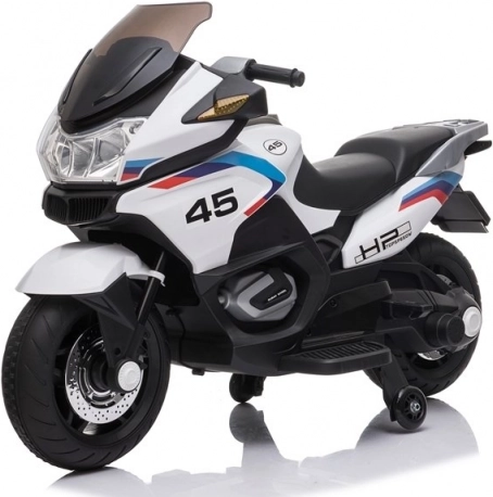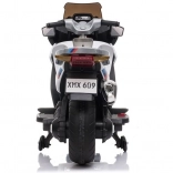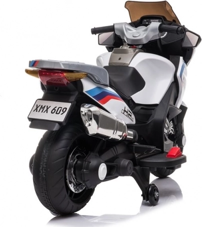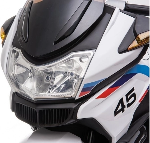 Detská akumulátorová motorka XMX609 v bielej farbe je ideálna pre malých závodníkov. Tento športový model je navrhnutý tak, aby zaujal svojou neobvyklou farebnosťou a konštrukciou. Je ozdobený detailnými znakmi modelu, ktoré dodávajú moderný vzhľad.