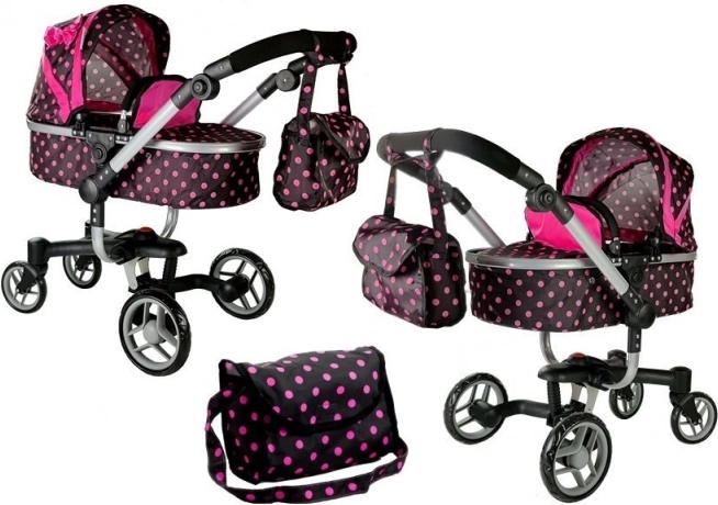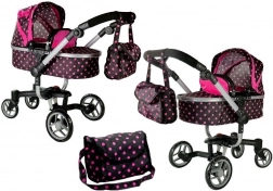 Kočík je navrhnutý v elegantnej čierno-ružovej kombinácii s jemnými bodkami, ktoré zaujmú každé dieťa.