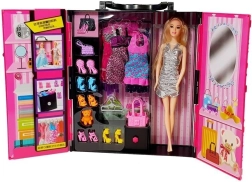 Ružová kufríková skriňa pre bábiky premení každú hru na módnu prehliadku. Otváracie krídla skrine, premyslené vnútorné usporiadanie a množstvo doplnkov umožnia deťom vytvárať nekonečné štýly. Bábika má dlhé, husté svetlé vlasy a jemný make-up – zábava s česaním a prezliekaním sa môže začať.