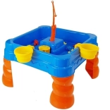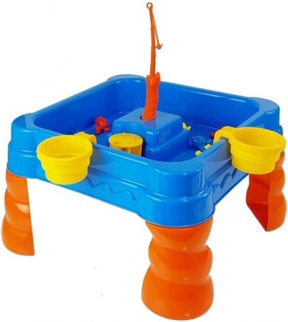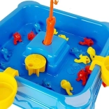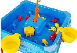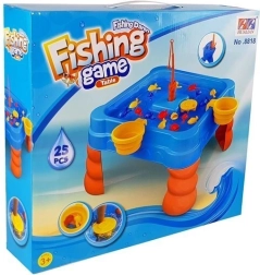 Veľká vodná rybárska hra premení každý podvečer na zábavný rybolov. Naplňte modro–oranžový stolík vodou, vložte rybičky a pomocou mechanizmu roztočte prúd, aby rybky veselo krúžili. Dvaja hráči potom súťažia o to, kto ich na prút chytí viac. Hra rozvíja jemnú motoriku, koordináciu oko–ruka a koncentráciu.