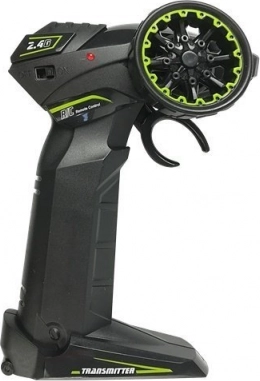 Moderný vysielač na frekvencii 2,4 GHz umožňuje pretekať vo viacerých ľuďoch bez rušenia a ponúka dosah približne 30–50 metrov.