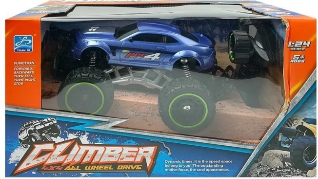 Výkonné RC terénne auto so štvorkolovým pohonom (4WD), mäkkými gumovými kolesami a silnými tlmičmi, ktoré si poradí s asfaltom aj nerovným terénom. Vďaka frekvencii 2,4 GHz môžete pretekať bez rušenia, maximálna rýchlosť je 6,5 km/h. Mierka 1:24 ponúka realistický vzhľad a skvelé jazdné vlastnosti pre deti od 6 rokov.
