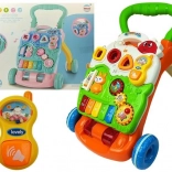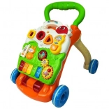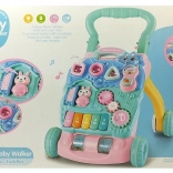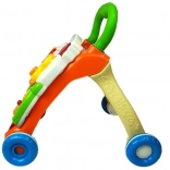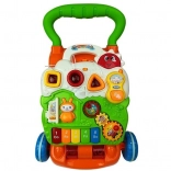 Podporte prvé samostatné krôčiky vášho dieťatka bezpečným a hravým spôsobom. Chodítko v pestrých farbách má pevné madlo, stabilnú základňu a kolieska so silikónovými pásikmi pre plynulejšiu a kontrolovanejšiu jazdu. Interaktívny panel s 5-klávesovým pianínkom, ozubenými kolieskami, otváracími dvierkami a roztomilým zajačikom rozvíja zrak, sluch aj jemnú motoriku.