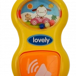 Súčasťou je odnímateľný detský telefón a tri vkladacie tvary (koliesko, štvorec, trojuholník) na rozvoj logiky a koordinácie oko–ruka.