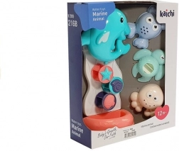Súčasťou sú tri morské zvieratká, ktoré plávajú na hladine vody a okolo vášho dieťaťa, vyvolávajúc úsmev na jeho tvári.