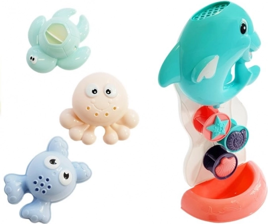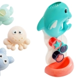 Prežite nezabudnuteľné kúpeľové dobrodružstvo s touto hračkou! Delfín funguje ako vodopád, ktorý udrží pozornosť dieťaťa. Stačí naliať vodu zhora a dolu tečie pohybujúcimi sa kolieskami s mušľami.