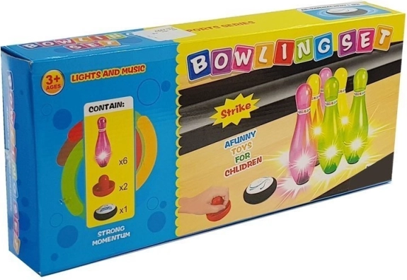 Farebná sada na bowling so šiestimi kužeľkami a svetelnými efektmi je ideálnou zábavou pre deti i dospelých. Pomáha rozvíjať presnosť a koordináciu.