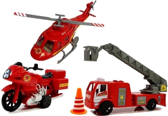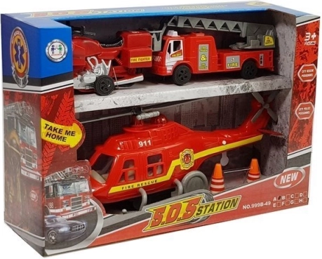 - 3 vozidlá v jednom balení – helikoptéra, hasičské auto, motocykel