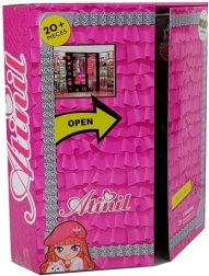 Otváracia krabica s grafikou šatníka prehľadne uschová bábiku aj všetky doplnky. Viac než 20 kusov v sade.