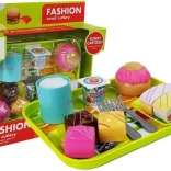 Sada obsahuje pestrý výber doplnkov – od podnosu cez tanieriky až po rôzne realisticky vyzerajúce dezerty, umožňujúce deťom zažiť radosť z varenia.