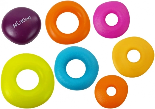 Súčasťou sady je sedem krúžkov rôznej veľkosti a textúry, ktoré nie sú vždy pravidelným kruhom. Dotykom a hrou s týmito krúžkami sa deti učia vnímať rozdiely a cvičia svoje motorické zručnosti.