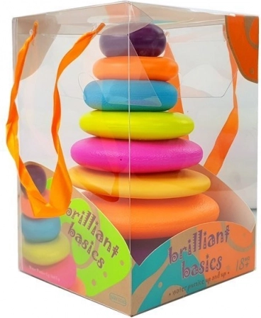 Hračka je vyrobená v súlade s normou EN71 a je úplne bezpečná pre deti od 18 mesiacov. Deti si užijú veľa zábavy so stohovaním tejto farebnej pyramídy.