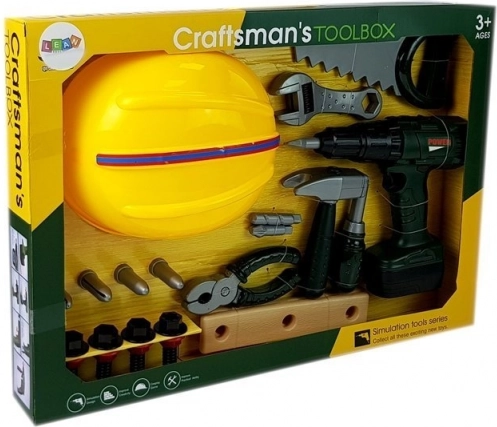 Skvelá detská sada náradia s akumulátorovou vŕtačkou so zvukom, ľahkou ochrannou prilbou a kompletom bezpečných plastových nástrojov na hru na opravára aj staviteľa. Podporuje jemnú motoriku, kreativitu a učenie tvarov a farieb. Vhodné pre deti od 3 rokov, spĺňa normy CE a EN 71.