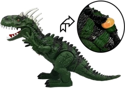 Interaktívny zelený dinosaurus na batérie poteší malých milovníkov praveku. Kráča dopredu, vydáva realistické zvuky revu, má svetelné efekty v „šupinách“ na hlave, kladie vajcia a v hrudi ukrýva projektor s obrazom skutočného tyranosaura. Skvelá hračka, ktorá rozvíja predstavivosť a prináša hodiny zábavy.