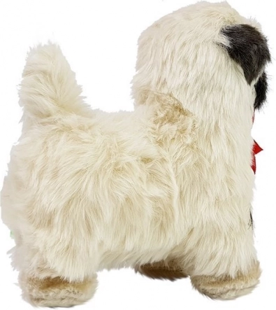 Stlačte tlačidlo na boku bruška a psík sa rozíde, pohybuje labkami, šteká a prehrá priateľskú melódiu.