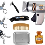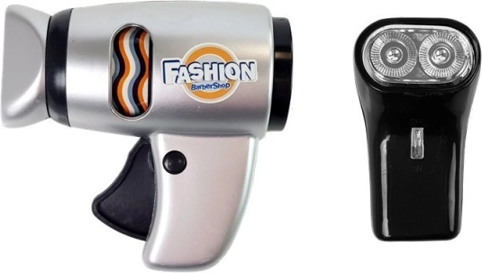 Fén po stlačení rukoväte roztočí farebný bubienok vo vnútri a strojček po posunutí bočného tlačidla vydáva autentický zvuk strihania. Sada zahŕňa všetko od hrebeňa, zrkadielka a bezpečných nožníc až po trimmer, žiletku na hranie či fľaštičky na „kozmetiku“.