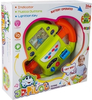 Volant v zeleno-oranžovej kombinácii s realistickými doplnkami simuluje pocit pilota v kokpite. Obsahuje interaktívne prvky, ktoré podporujú motorické zručnosti a predstavivosť.