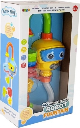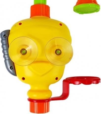 Táto hračka je skvelým doplnkom do vane pre dojčatá. Jej funkcie podporujú samostatnú hru a umožňujú objavovať mechanizmy nalievania vody z pohárikov. Zadná časť robota je vybavená prísavkami, ktoré umožňujú jeho upevnenie k vani, pričom spodná časť hračky by mala byť ponorená vo vode. Po pripevnení stačí stlačiť okuliare robota, čím začne voda prúdiť zo sprchy do fontány. Špeciálnymi pohárikmi možno ľahko zmeniť smer vodného toku a pohyblivé diely hračky vytvárajú vodopád.