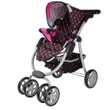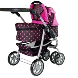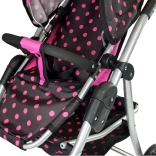 Kočík pre bábiky kombinuje hru a učenie, čím podporuje rozvoj detí v empatickom a zodpovednom správaní. Elegantný čierny dizajn s ružovými bodkami pripomína skutočné kočíky a tak povzbudzuje kreatívne hranie. Konštrukcia z robustných hliníkových rúrok a plastovými spojkami zaručuje odolnosť a stabilnú jazdu.