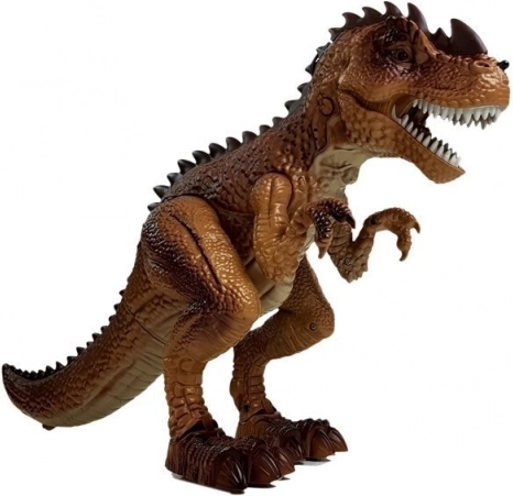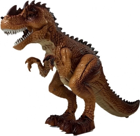 Interaktívny dinosaurus poteší všetkých fanúšikov praveku aj akčných príbehov. Po zapnutí sa sám pohybuje vpred, ozývajú sa kroky a desivý rev a oči sa rozsvietia načerveno. Stlačením spúšte na pištoli odštartujete súboj – každý zásah spustí svetelné a zvukové efekty; pri deviatom zásahu sa T‑rex zvalí a vydá efekt prehry.