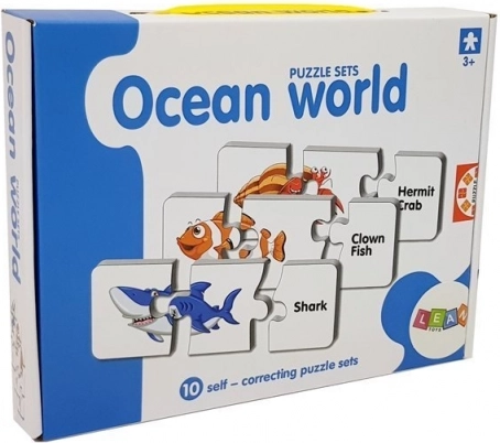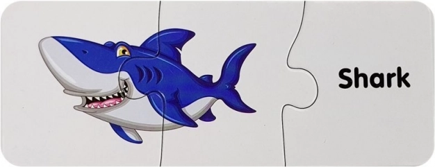 Táto sada edukačných puzzlí zo sveta oceánov spája zábavu a učenie. Vďaka obrázkom a anglickým názvom ako Shark, Dolphin či Octopus si deti prirodzene rozšíria slovnú zásobu a naučia sa priraďovať slová k obrázkom. Samokontrolné tvary dielikov napovedia správne riešenie a posilnia sebadôveru pri hre.