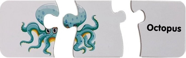 Každý dielik spája roztomilý obrázok morského tvora s jeho anglickým názvom. Deti si tak ľahko zapamätajú nové slová a ich význam.