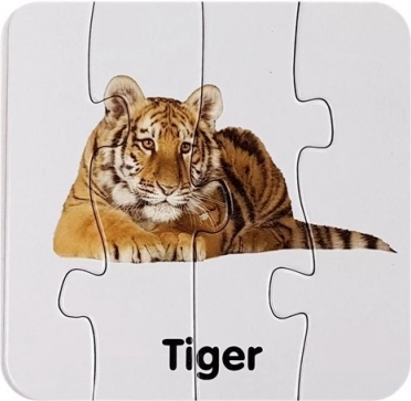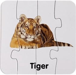 Zábavná sada vzdelávacích puzzle, ktorá prepája hru a učenie. Deti skladajú obrázky divokých zvierat a zároveň sa učia ich názvy v angličtine. Sada ponúka 10 samokontrolných dvojíc, podporuje jemnú motoriku, trpezlivosť a vizuálne vnímanie. Ideálne pre predškolákov od 3 rokov.