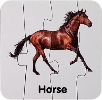 Objavte múdry spôsob, ako deti zoznámiť s angličtinou aj svetom zvierat. Každá dvojica puzzle zobrazuje zviera a jeho názov v angličtine (napr. Lion, Giraffe, Elephant), čo prirodzene rozširuje slovnú zásobu. Vďaka samokontrolnému systému deti spoznajú správne spojenie samy.