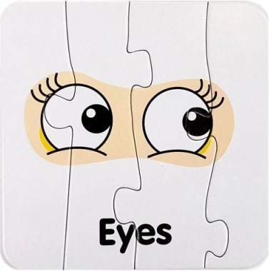 Každý dielik má anglický popis (napr. Eyes, Mouth, Nose), takže si deti pojmy osvoja počas hry.