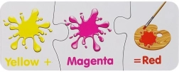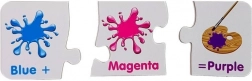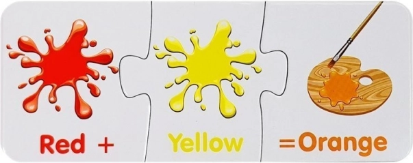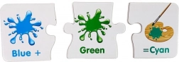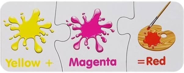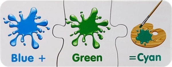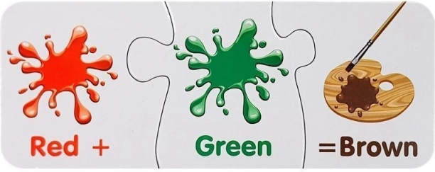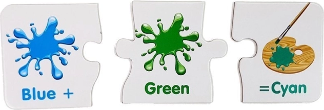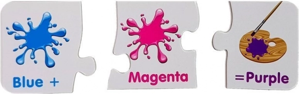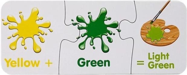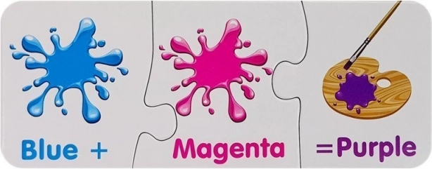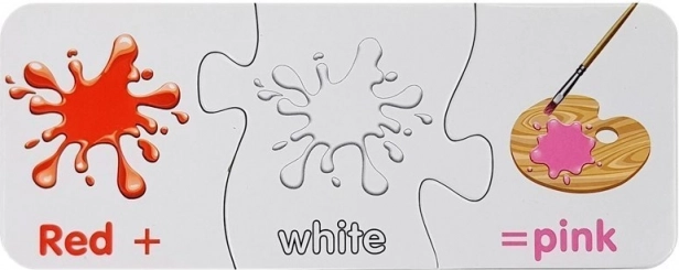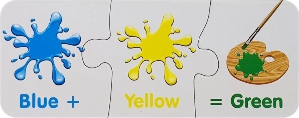 Každé mini‑puzzle ukazuje dve farby a výsledný odtieň. Deti rýchlo pochopia princípy miešania a farby si lepšie zapamätajú.