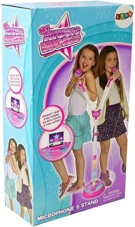 Premeňte izbu na pódium. Farebne podsvietený stojan rozžiari každý duet, zatiaľ čo zabudovaný reproduktor sa postará o zábavu. Stačí pripojiť priložený kábel MP3, pustiť obľúbenú skladbu a šou sa môže začať.