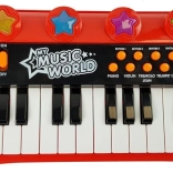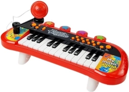 Ideálna voľba pre chlapcov aj dievčatá, ktorí chcú usporiadať svoj prvý koncert doma. Klávesy v červeno‑čiernom dizajne s farebnými motívmi podporujú kreativitu, sluchové vnímanie a zmysel pre rytmus. Vďaka priloženému mikrofónu môže dieťa súčasne spievať aj hrať, USB/MP3 vstup umožní pustiť obľúbené pesničky – perfektné pre domáce karaoke.