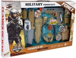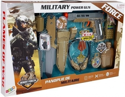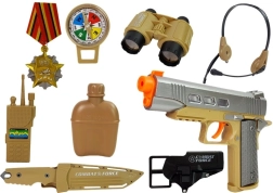 Vojenská sada s príslušenstvom Pištoľ Nôž Ďalekohľad Slúchadlá Píšťalka Krátkovlnná vysielačka