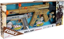 Táto vojenská sada v modernom maskovacom štýle ponúka deťom množstvo akcie a fantázie. Veľká pištoľ so svetelnými diódami a zvukom rýchlej streľby nadchne dynamickou hrou, zatiaľ čo menšia pištoľ/„revolver“ doplní výbavu o autentické zvuky jednotlivých výstrelov a prebijania. Slúchadlová sada s mikrofónom uľahčí komunikáciu medzi malými „vojakmi“ a z píšťalky sa stane signál k akcii.