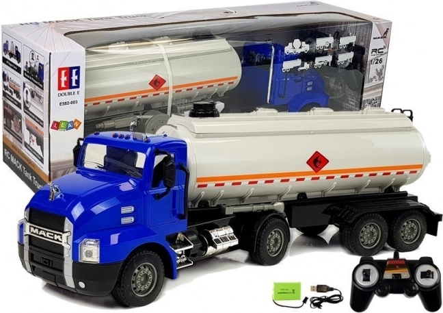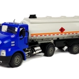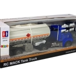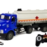 Vozidlo na diaľkové ovládanie má modrú kabínu s bielym prívesom. Je zdobené kontrastnými čiernymi detailmi. Plastové nákladné auto s odpojiteľným prívesom je vybavené svetelnými a zvukovými efektmi. Veľkým lákadlom pre vaše dieťa je, že nádrž možno naplniť vodou! Pomocou hadice možno nádrž vyprázdniť a po dokončení ju navinúť na bubon. Podvozok je rozkladací a skladací, takže cisternu môžete nechať stáť a pohybovať sa len s autom. Vyrobené v mierke 1:26.