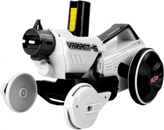 Ovládač má spúšť pre jazdu vpred/vzad a otočné koliesko pre precízne zatáčanie. Pripojením ovládača na zadnú časť auta a zložením podvozka vytvoríte veľký ručný blaster s pohodlným úchopom. Silná streľba a skvelá rýchlosť prinesú deťom veľa akcie aj fantázie.