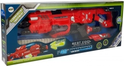 Tento červený a čierny elektrický detský pištoľ má futuristický dizajn, ideálny pre pútavú hru plnú fantázie.