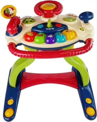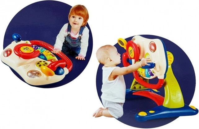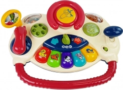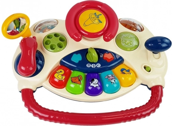 Farebný volant s radiacou pákou a zrkadlom rozvíja motorické zručnosti a prináša detské kreatívne prostredie.