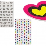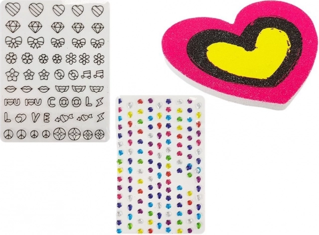 Súprava obsahuje farebné nálepky a penové tvary, ktoré umožňujú vytvoriť unikátny nechtový dizajn.