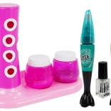 Súprava obsahuje číry lak, dva trblietkové kontajnery, farebné nálepky v tvare srdca, kvety a ďalšie zaujímavé tvary, ktoré dodajú kreatívny nádych každému dizajnu.
