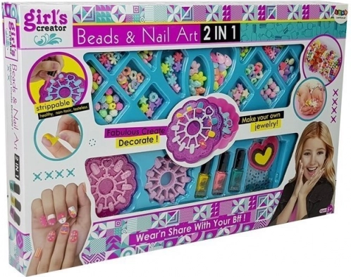 V sade nájdete nielen laky na nechty, ktoré rýchlo schnú a držia na nechtách, ale aj veľké množstvo korálkov v rôznych tvaroch a farbách. Deti môžu skúšať rôzne kombinácie a naučiť sa spolupracovať s farbami a tvarmi vo svojich projektoch.